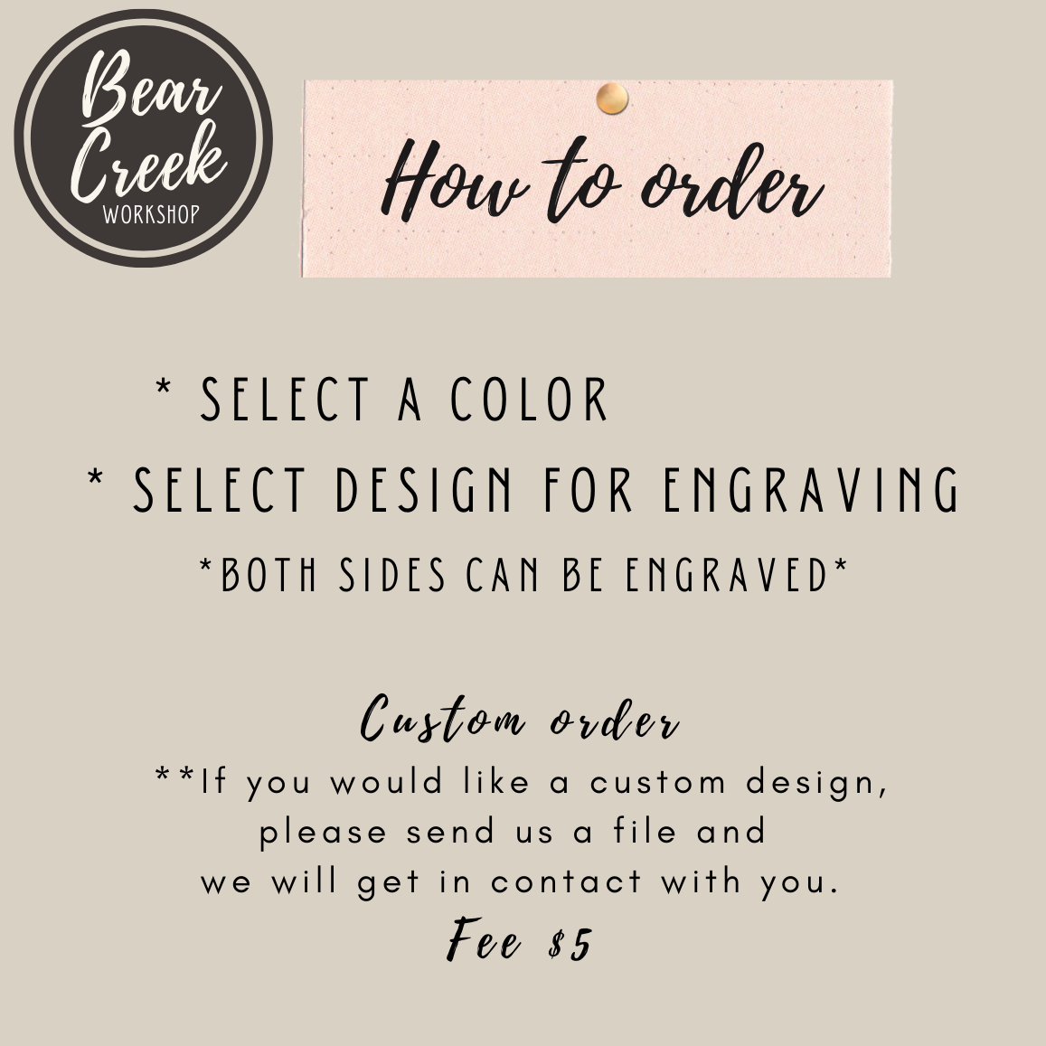 Custom Engraving: If you would like a different saying engraved, please send us a picture and we will get in contact with you.